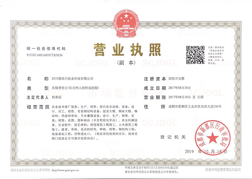 四川德农川农业科技有限公司位于成都市新都区工业东区龙虎大道266号,公司引进了先进的生产设备,专业生产销售各种大棚原材...